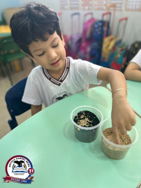 Os alunos do Grupo 4 da Educação Infantil colocaram a mão na terra e viveram uma experiência cheia de aprendizado e encantamento! Eles plantaram grãos de alpiste e, dia após dia, cuidaram com carinho de suas mudinhas — observando de perto a importância da água, do ar, dos nutrientes e da luz para o crescimento das plantas. Ao final, representaram todo o processo de desenvolvimento por meio de desenhos, registrando cada descoberta. 💚 Uma atividade simples, mas repleta de significado e aprendizado! Por Magda Oliveira Assessora de Comunicação EDB